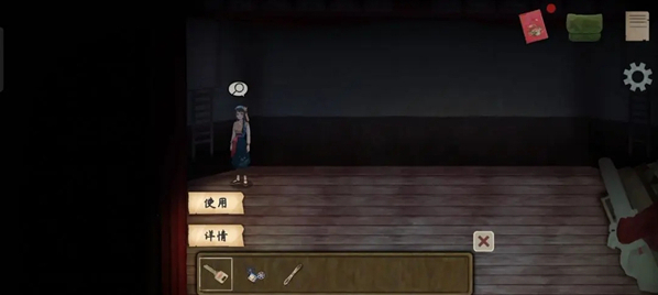 跟王阿姨交談后進屋,開幕布獲放映機,回臺下拉幕布解謎,得隔間鑰匙。