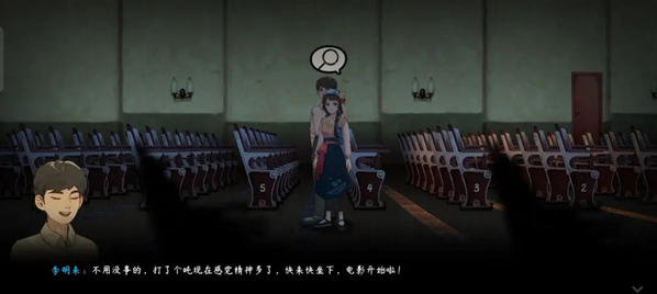 用梯子和鑰匙進隔間,點擊開關(guān)和底片,放映機放置好后找李明看電影,第一章結(jié)束。