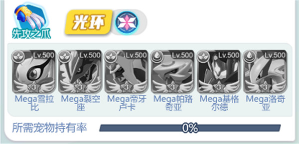 -Mega雪拉比+Mega裂空座+Mega帝牙盧卡+Mega帕路奇亞+Mega基格爾德+Mega洛奇亞;